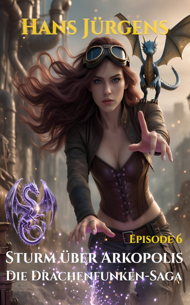 Die Welt von Drachenfunken verbindet Steampunk, Hexerei und außerirdische Systeme zu einem eigenen Stil. In Arkopolis bestimmen Luftschiffe, Dampfantriebe, Runenmodule, Mecha-Technik und Aetherapparate den Alltag. Dazu kommt Magie, die nie sauber und folgenlos wirkt, sondern Kraft kostet, instabil werden kann und oft nur mit Disziplin beherrschbar bleibt. Hinter allem stehen Technologien und Artefakte, die älter, fremder und gefährlicher sind, als die Menschen der Stadt begreifen.