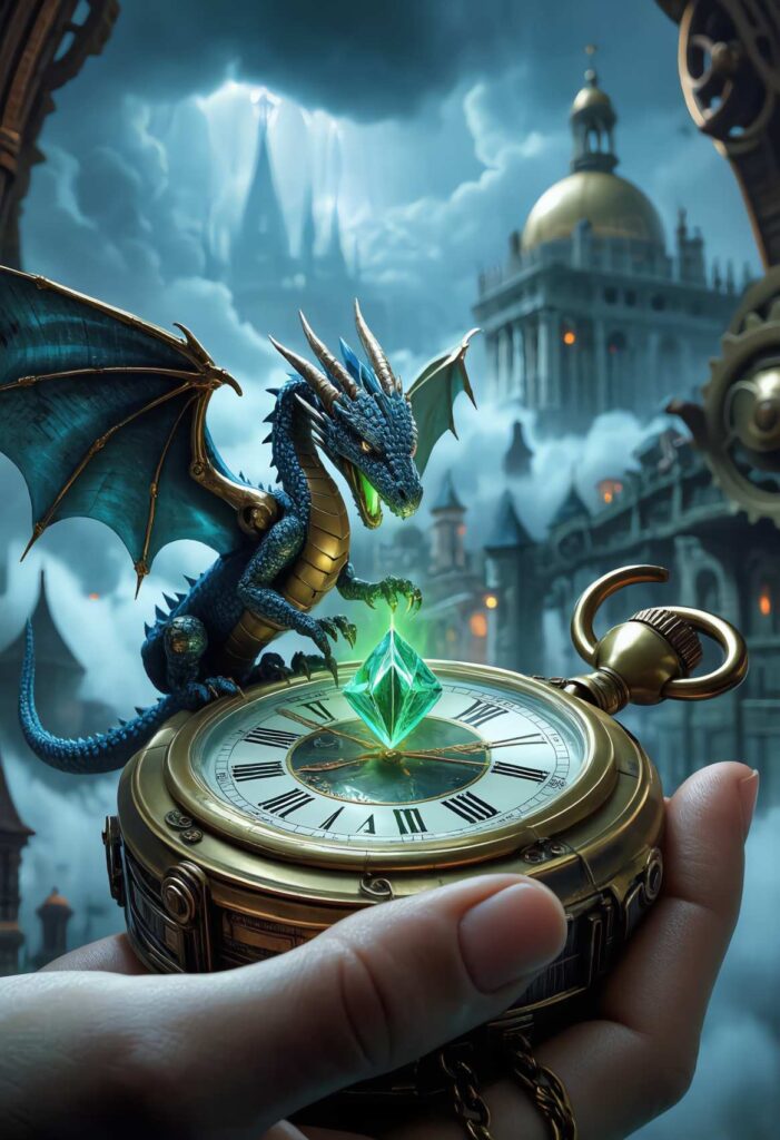 Victoria Arkopolis 1895: Zwischen Dampf und Ruß trägt Dockhexe Ellie Ashcroft eine alte Taschenuhr – bis ein grüngoldener Kristall darin erwacht und den außerirdischen Drachen Seraphrax anlockt. Jetzt jagen MI13 Agenten, preußische Mecha Ritter und eine Pariser Hexenspionin nach dem Artefakt. Ellie muss entscheiden: Uhr abgeben oder Drache und Stadt retten.