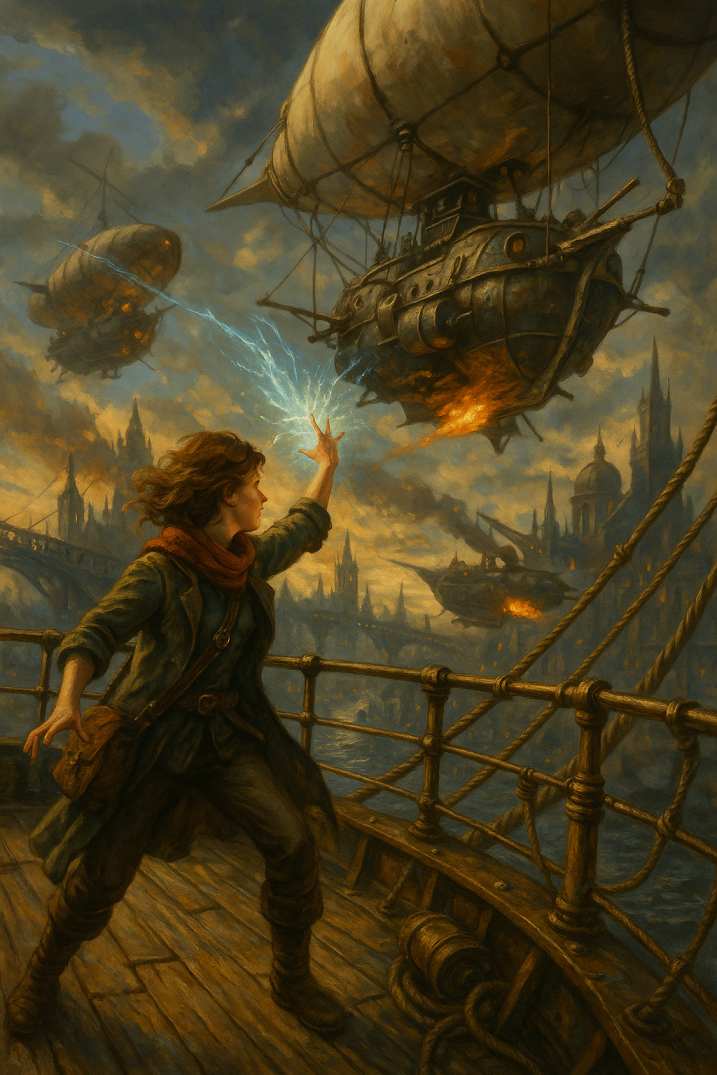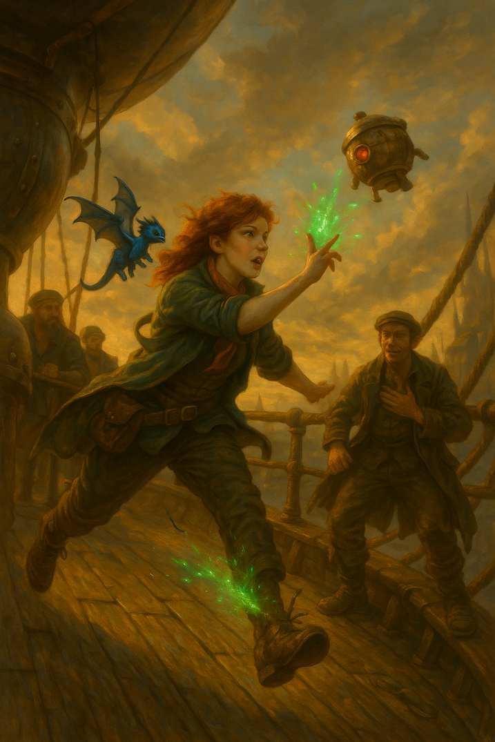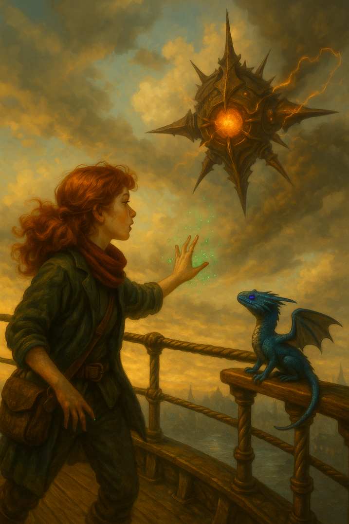 Hier siehst du die Drachenfunken-Saga in Bildern: KI-Renderversuche, Illustrationen und visuelle Experimente aus allen sechs Episoden. Von Arkopolis bis Kamien, von Docks, Dampf und Hexenrunen bis zu Drachen, Intrigen und Absturzgefahr. Nicht jedes Bild ist endgültig – genau das ist der Reiz. Diese Galerie zeigt nicht nur fertige Motive, sondern auch den Weg dorthin.