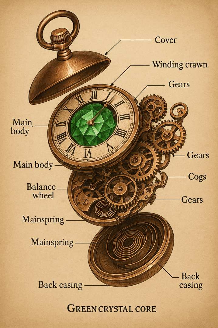 Alt, zerkratzt und auf den ersten Blick wertlos: Ellies Taschenuhr ist das letzte greifbare Andenken an ihren verschollenen Vater Gideon Ashcroft. Doch im Inneren verbirgt sich weit mehr als ein defektes Uhrwerk. Was für Ellie lange nur Erinnerung war, wird zum Schlüssel einer Kette von Ereignissen, die weit über Arkopolis hinausreichen. Je stärker der verborgene Funke in ihr erwacht, desto deutlicher zeigt sich, dass diese Uhr nie nur ein Erbstück war.
