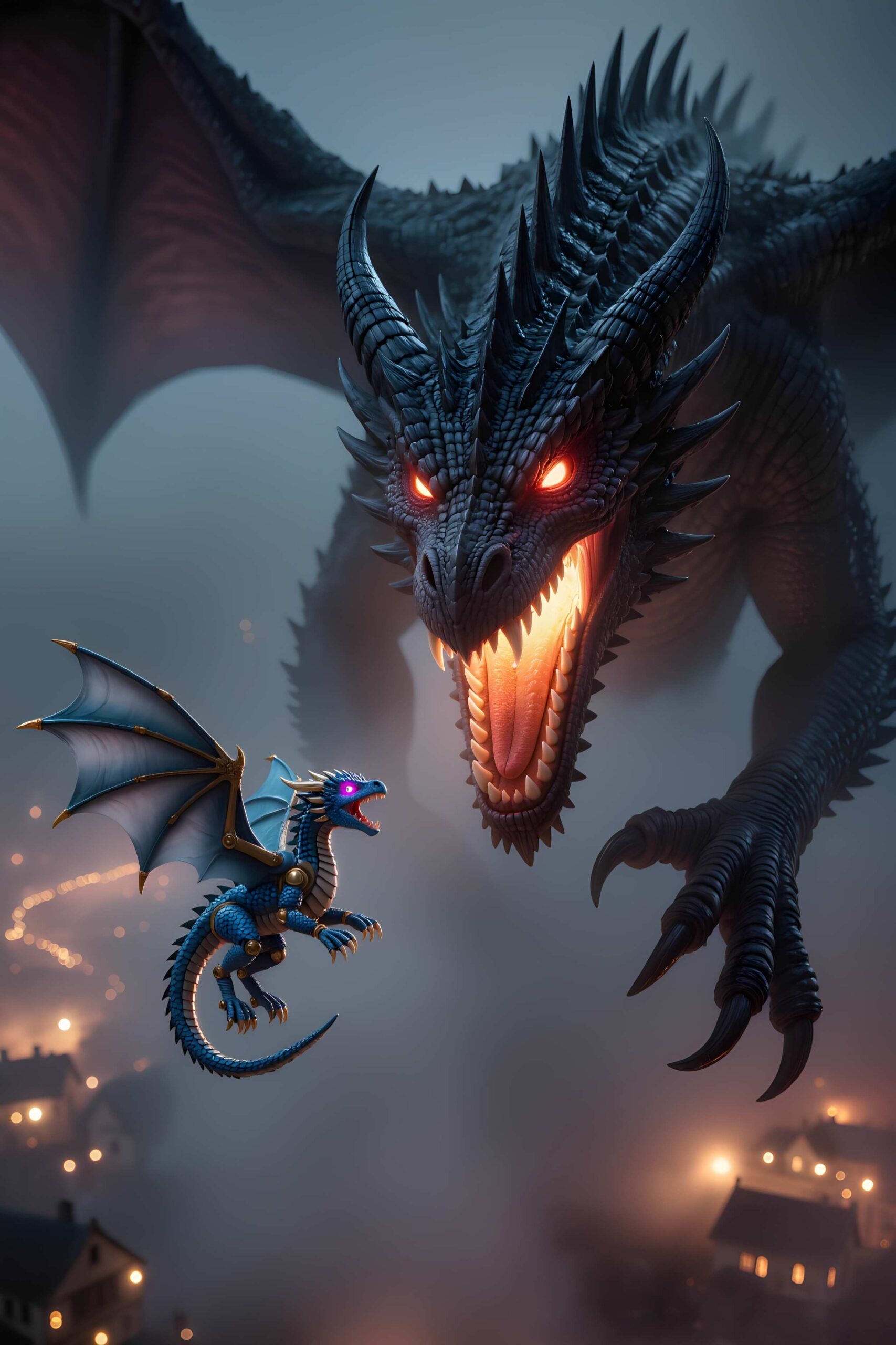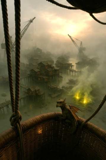 Eine schwebende Stadt. Eine Chaos Hexe. Ein Nano Drache.