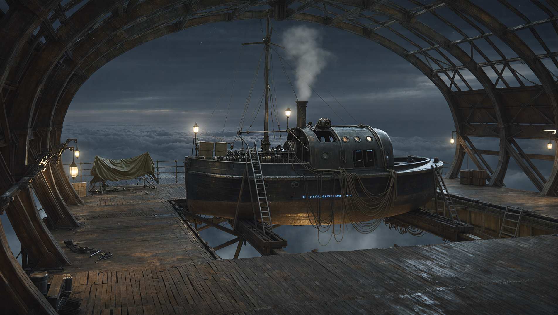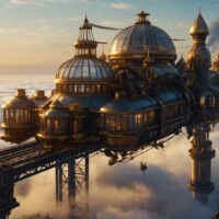 Arkopolis, die schwebende Steampunk-Stadt über London.