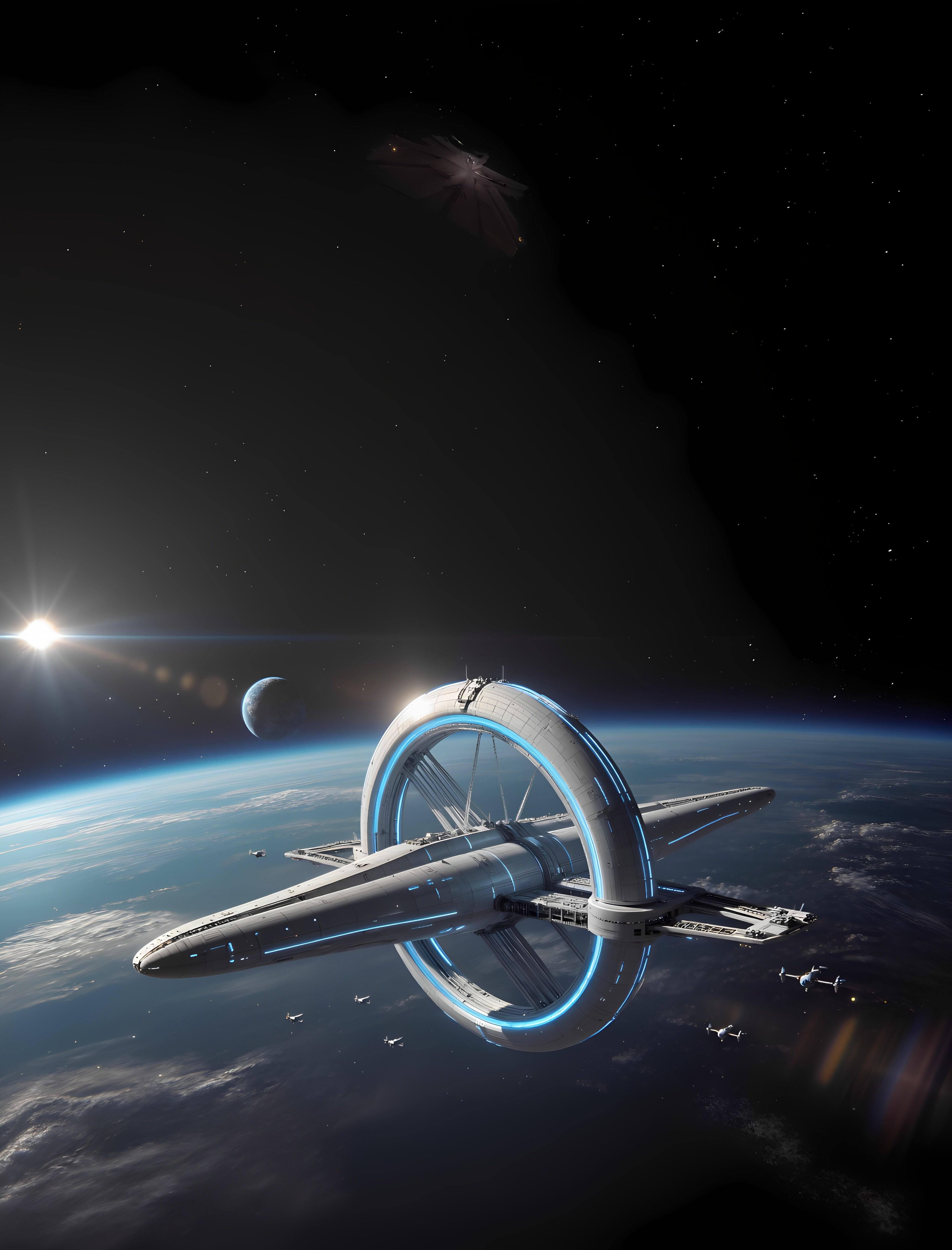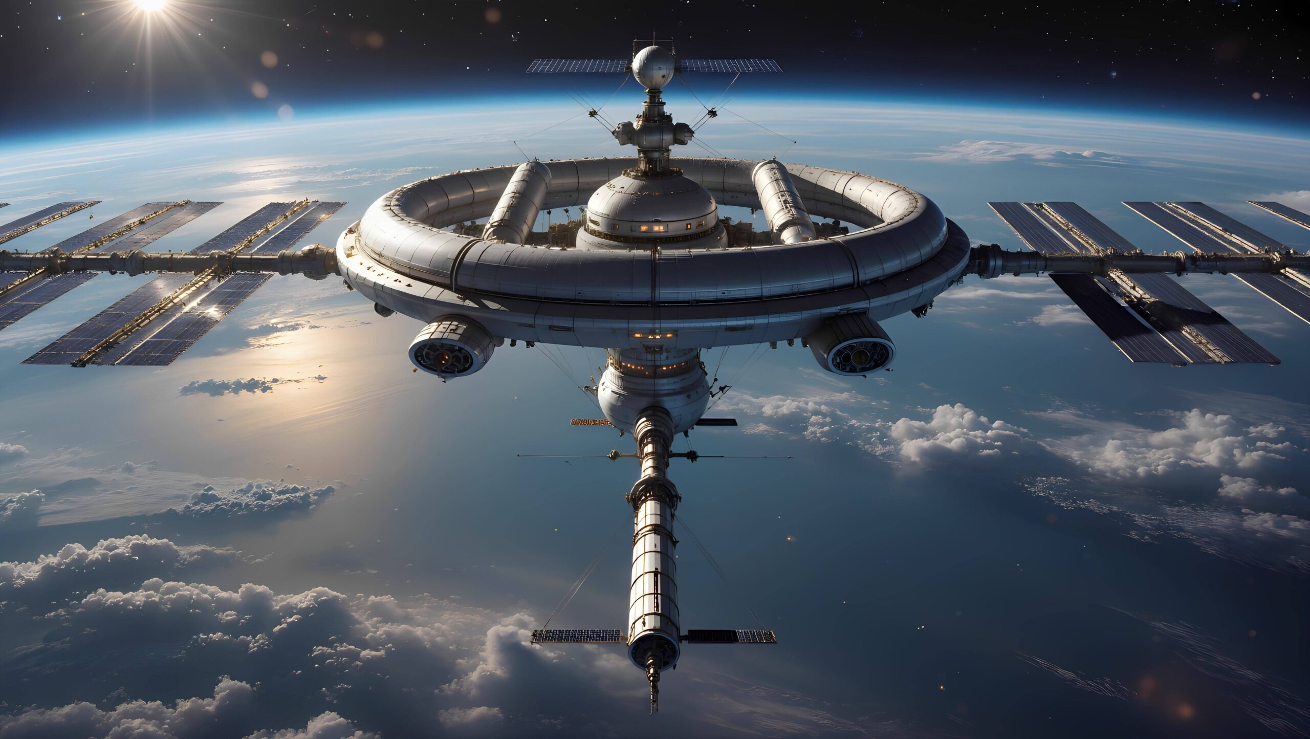 - Aufbau: rotierender Zylinder (kรผnstliche Schwerkraft), Achsenbereich teilweise schwerelos